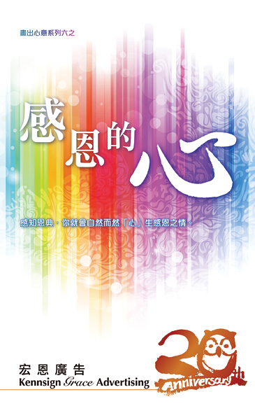 《感恩的心》將宏恩二十年所經歷的恩典串聯起來,我渴望與你一起分享所受的恩惠,讓一幅幅的作品拼合展現成一張美善的圖畫。我很珍惜這二十年來的際遇,是一段對生活體驗、生命改變、喜悅與滿足的旅程。